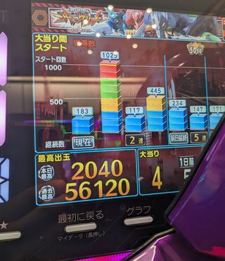 あまりにもヘソにスポスポと吸い込まれるので怖くなったぐらいに最初の500円で21も回ったが、さすがに上上上ムラで一万円が終わる頃には237回転。終日均してみると22ちょいか。・・・素晴らしいじゃねえか!!